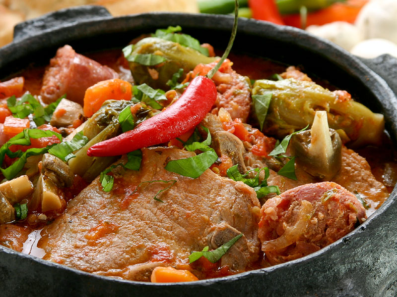 Ein wunderbarer, dezent scharfer, Fleisch-Eintopf mit verschiedenen Fleischsorten und leckerem Gemüse.